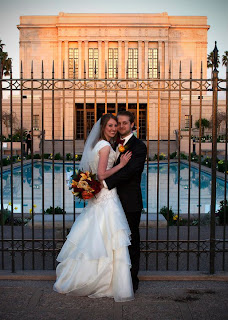 Jaimee and Seth in front of the Mesa Temple on their Wedding Day. Absolutely breath-taking.